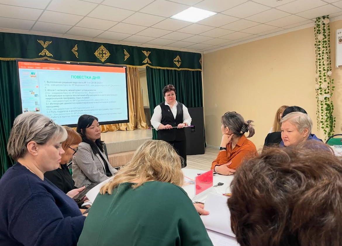 2025 жылғы 30 қазанда мектепте «Адал Азамат» ұлттық бағдарламасын іске асыру аясындағы білім алушыларды тәрбиелеудің өзекті мәселелері» тақырыбында №2 педагогикалық кеңес өтті.