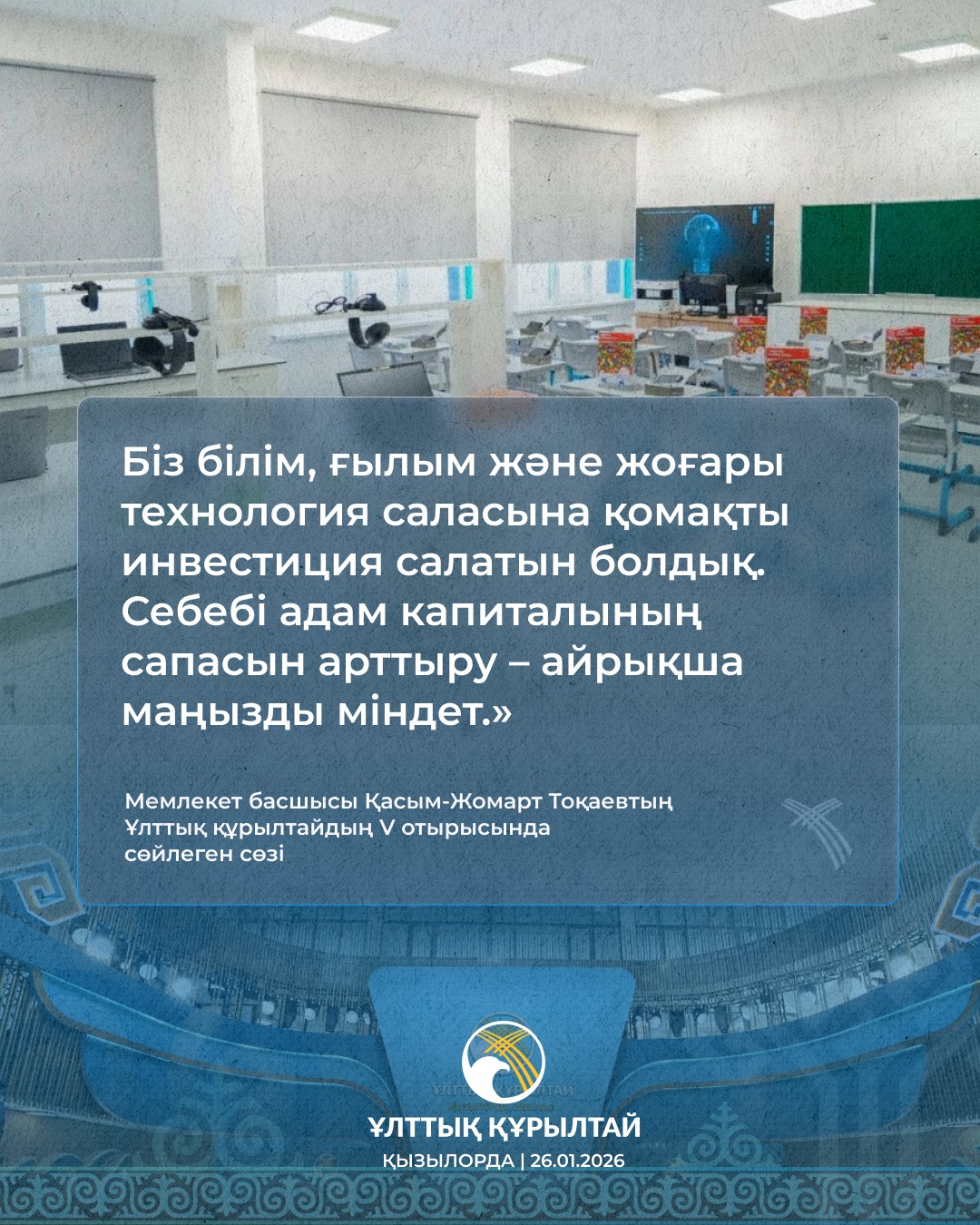 №135 жалпы білім беретін мектеп » Ақпарат » 2026 жылғы 20 қаңтарда Қазақстанда Ұлттық құрылтайдың V отырысы өтті. Отырыста Қазақстан Республикасының Президенті Қасым-Жомарт Тоқаев бағдарламалық баяндама жасады.