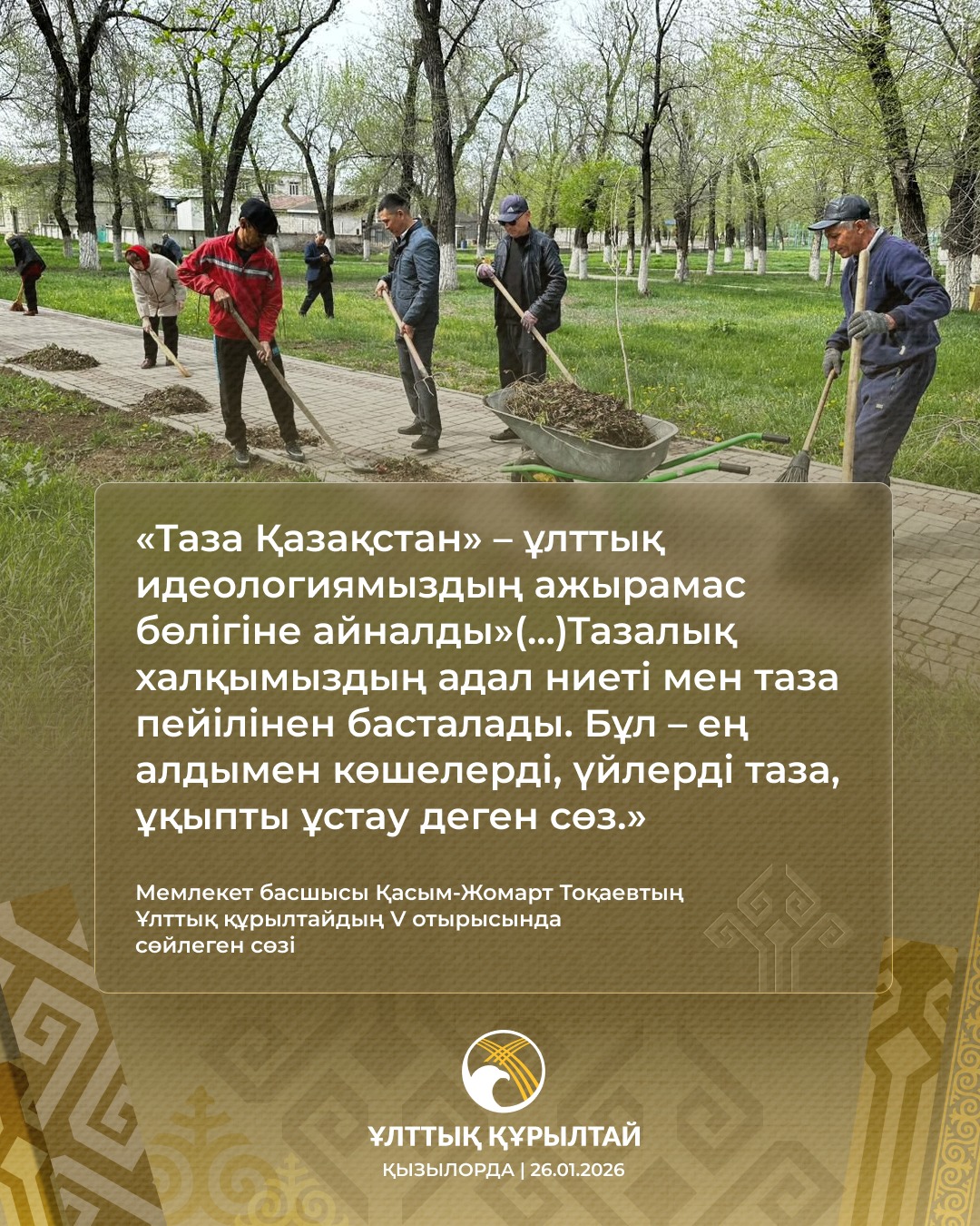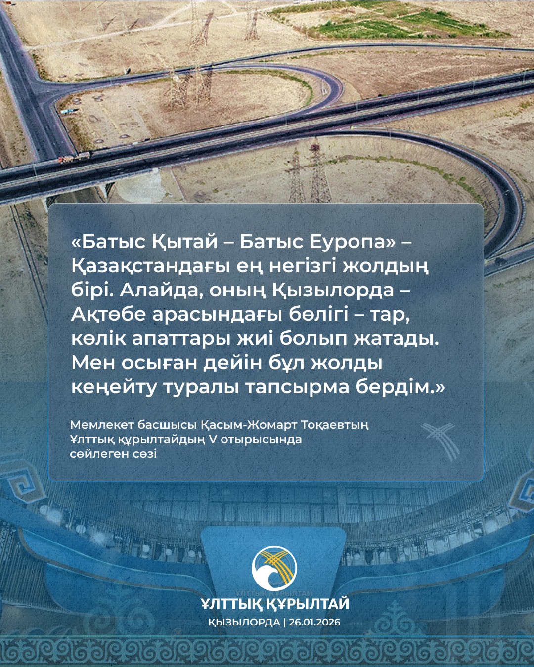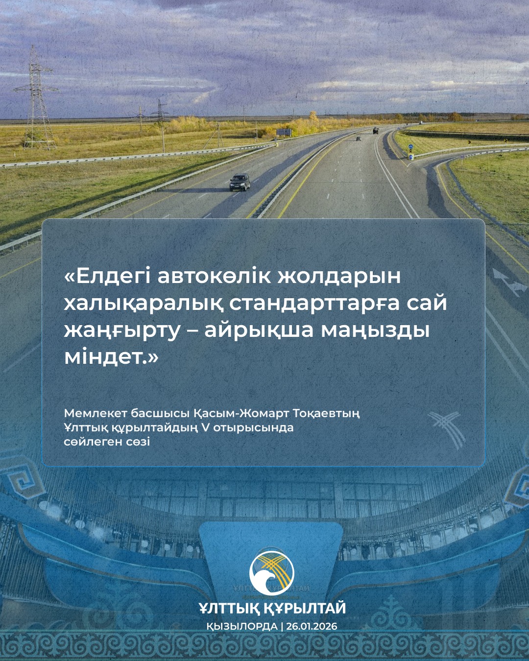 2026 жылғы 20 қаңтарда Қазақстанда Ұлттық құрылтайдың V отырысы өтті. Отырыста Қазақстан Республикасының Президенті Қасым-Жомарт Тоқаев бағдарламалық баяндама жасады.