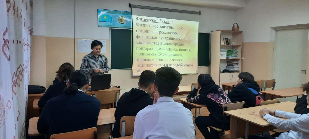 В рамках профилактики школьного буллинга среди обучающихся КГУ ОШ 135, 8 ноября 2022 года была проведена профилактическая беседа "Буллинг в школе: причины, последствия, помощь". Педагоги-психологи Вильданова Э.Т., Алшымбекова Ж.С и социальный педагог Киргизбаева Ш.С  раскрыли сущность понятия "школьный буллинг", определили какие компоненты включает в себя буллинг, его виды, причины и последствия. Также были предложены практические упражнения для сплочения коллектива, профилактики конфликтов в классе. Даны рекомендации о правилах и механизмах конструктивного разрешения конфликтов среди учащихся. Обучающиеся оценили важность проведенной беседы положительными отзывами в конце занятия.