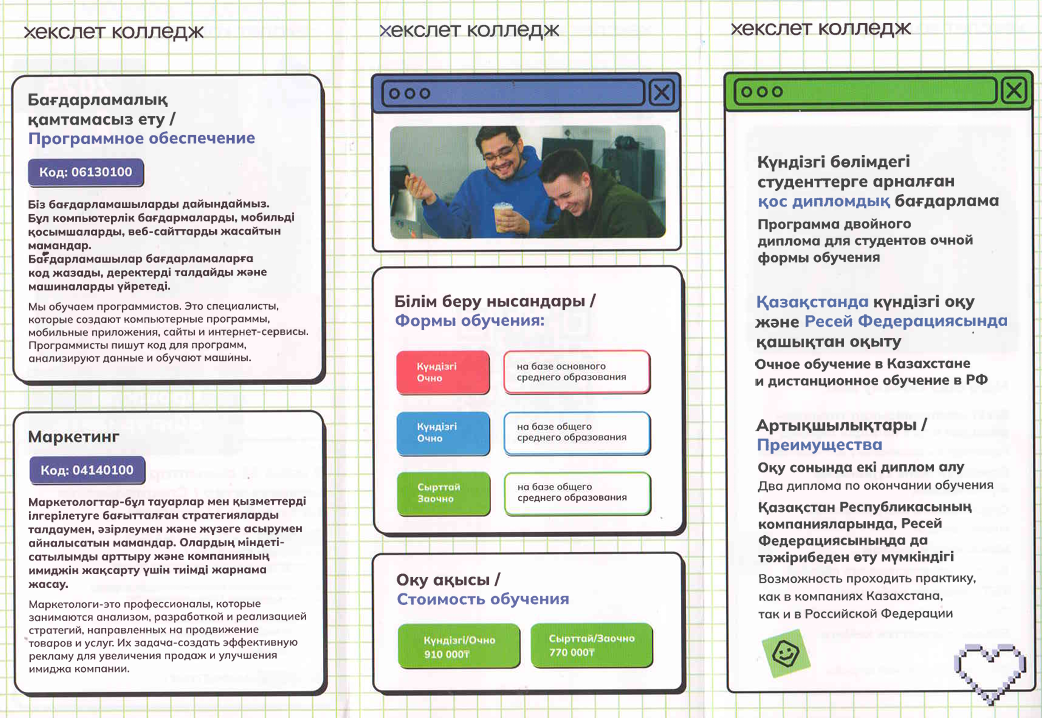 Колледж өкілдері оқу формалары туралы да айтты: 9 немесе 11 сыныптан кейін күндізгі және қашықтықтан оқыту.