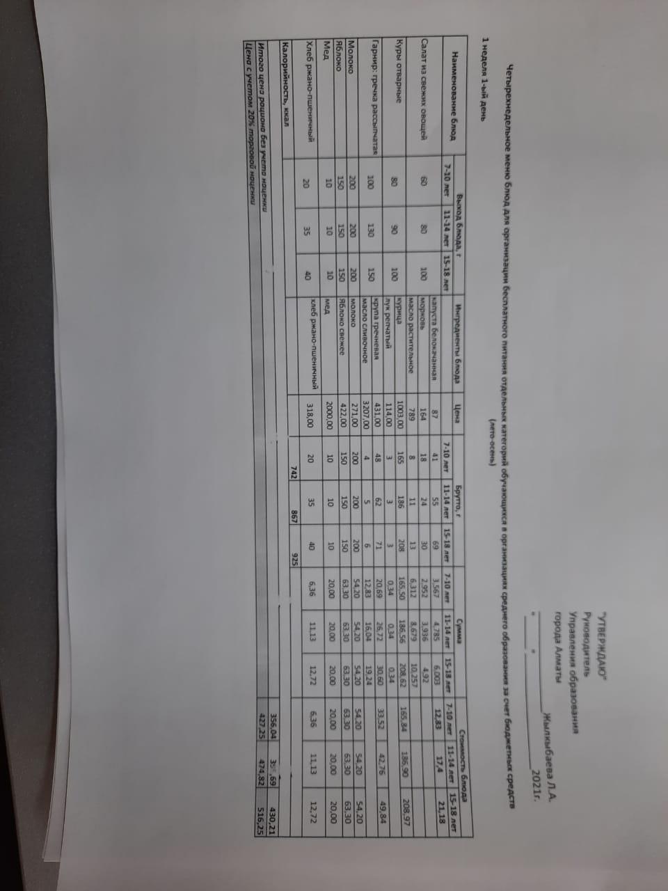 01 қыркүйек 2021 0 1 2 3 4 5 Меню блюд для организации бесплатного питания отдельных категорий Меню блюд для организации бесплатного питания отдельных категорий Осы беттің QR-коды:QR-код этой страницы: