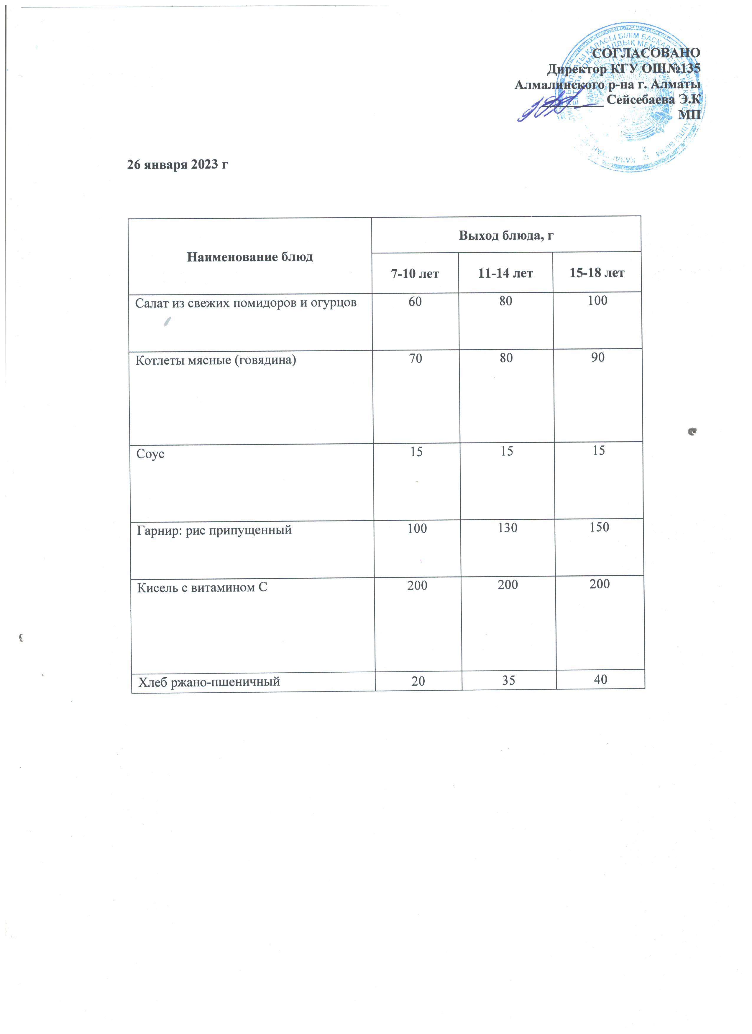 18.01.2023 ас мәзірі, меню