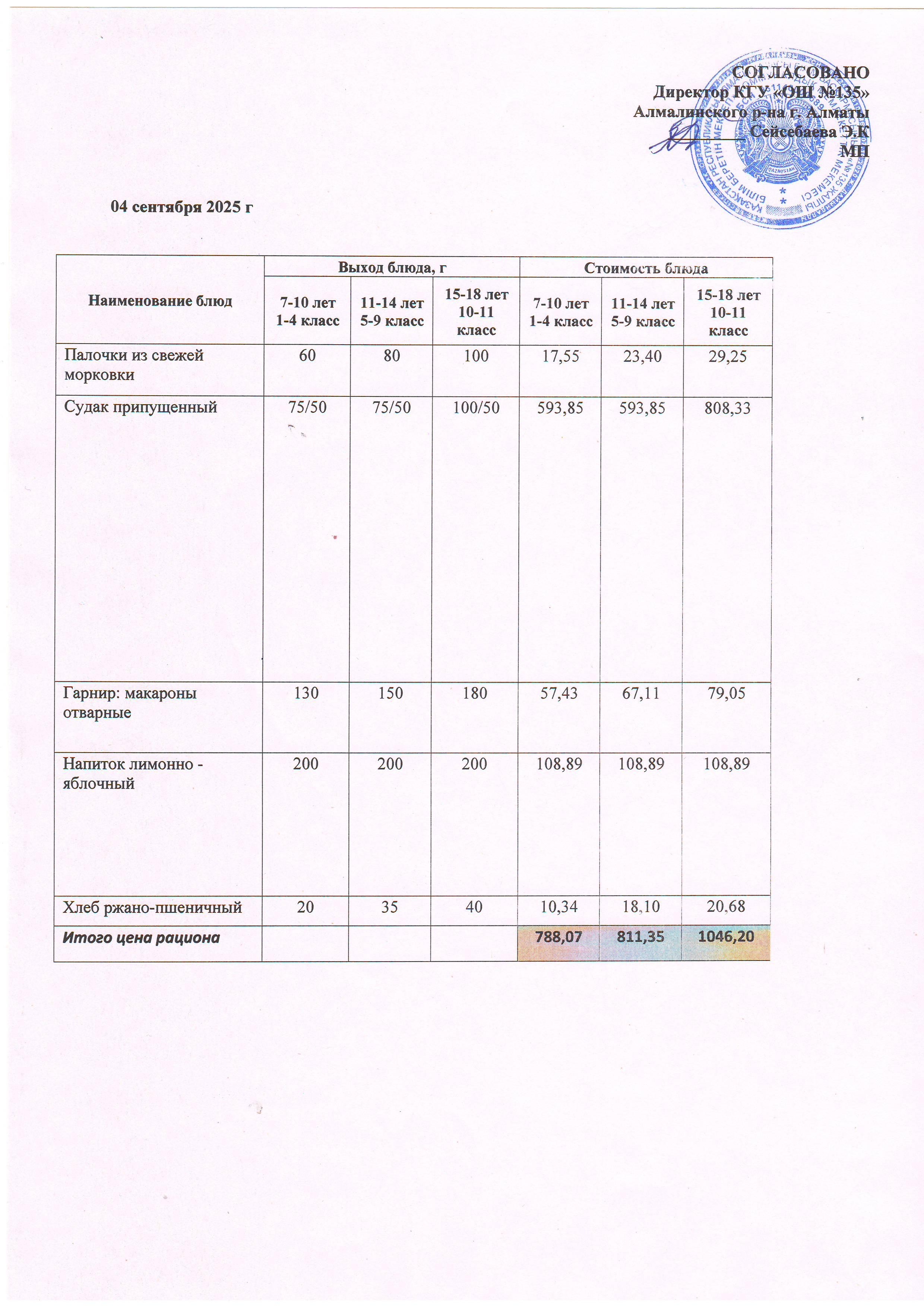 Ас мәзірі 04.09.2025