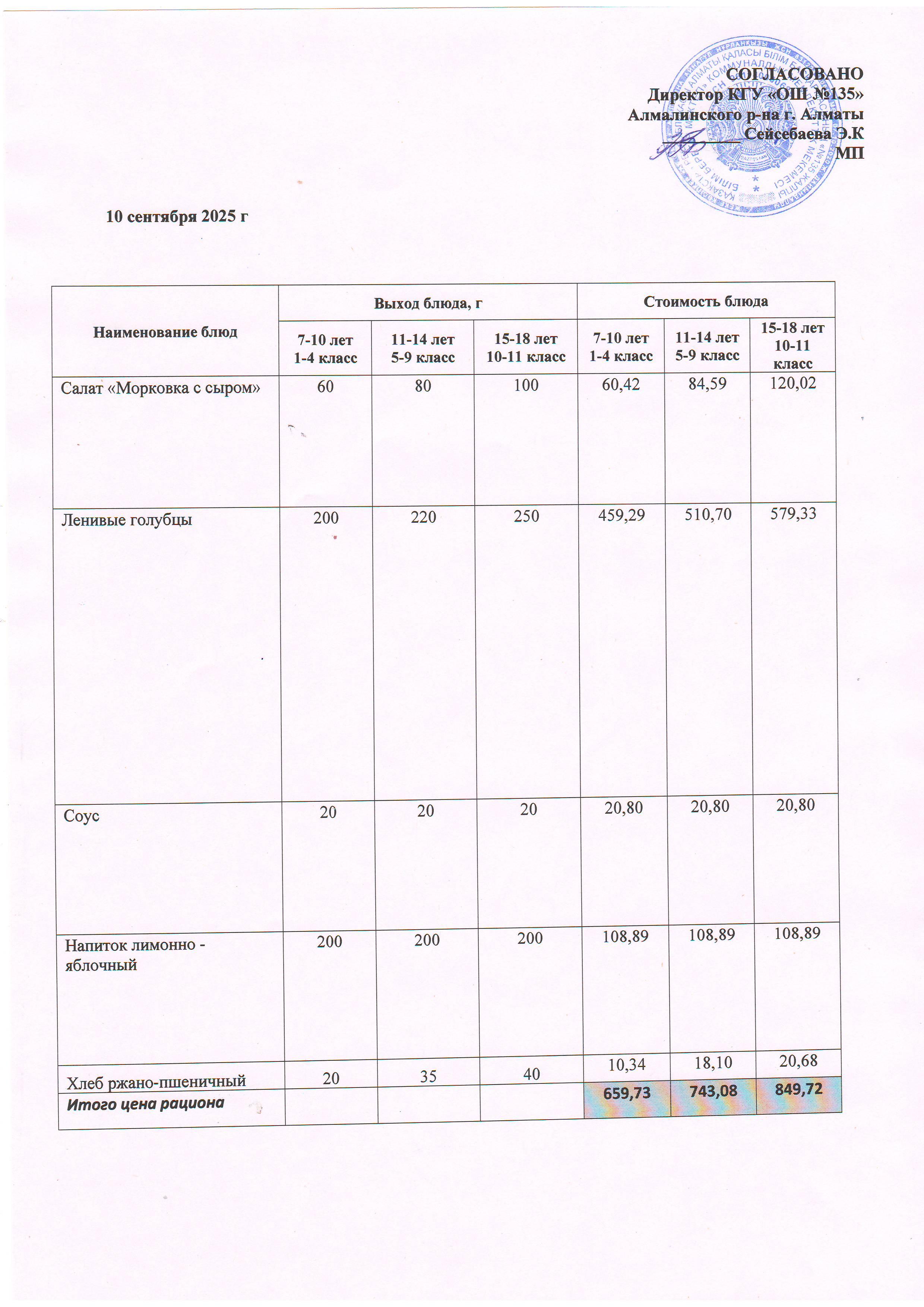 Ас мәзірі 10.09.2025