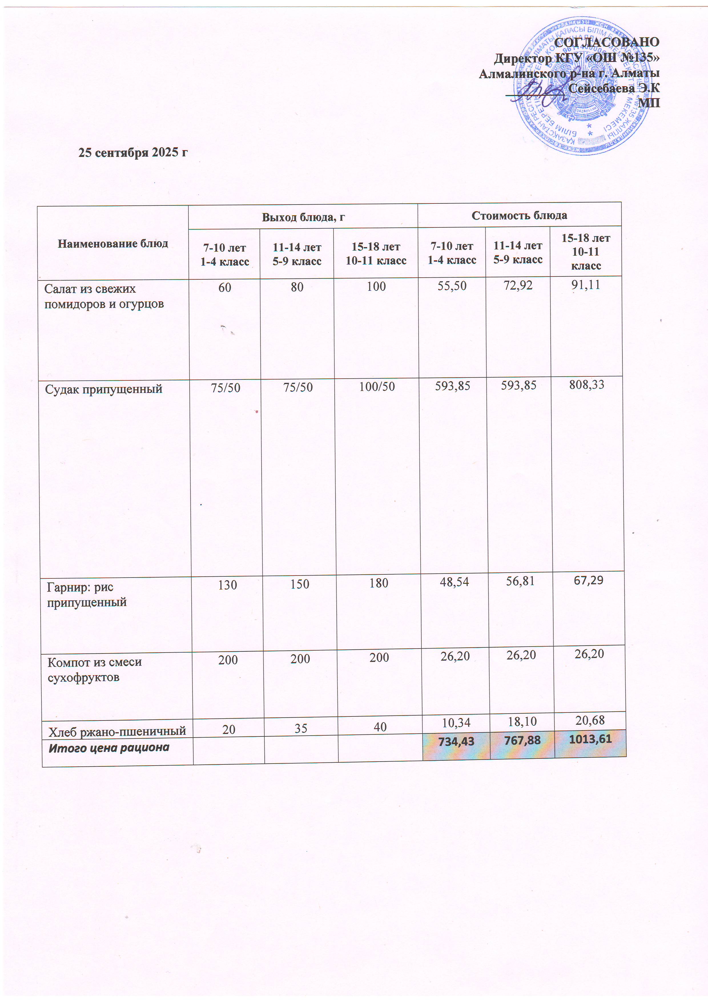 Ас мәзірі 25.09.2025