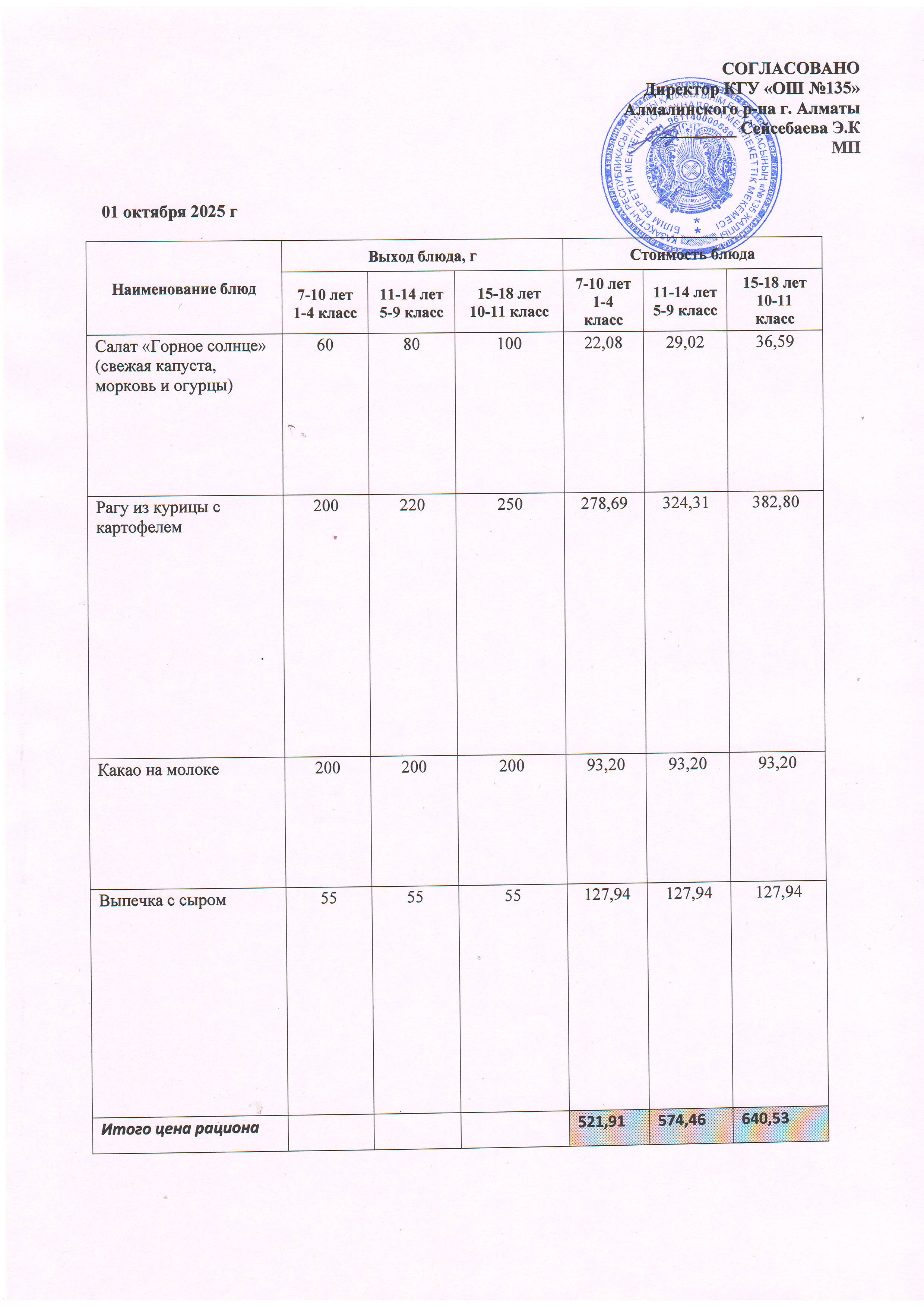 Ас мәзірі 01.10.2025