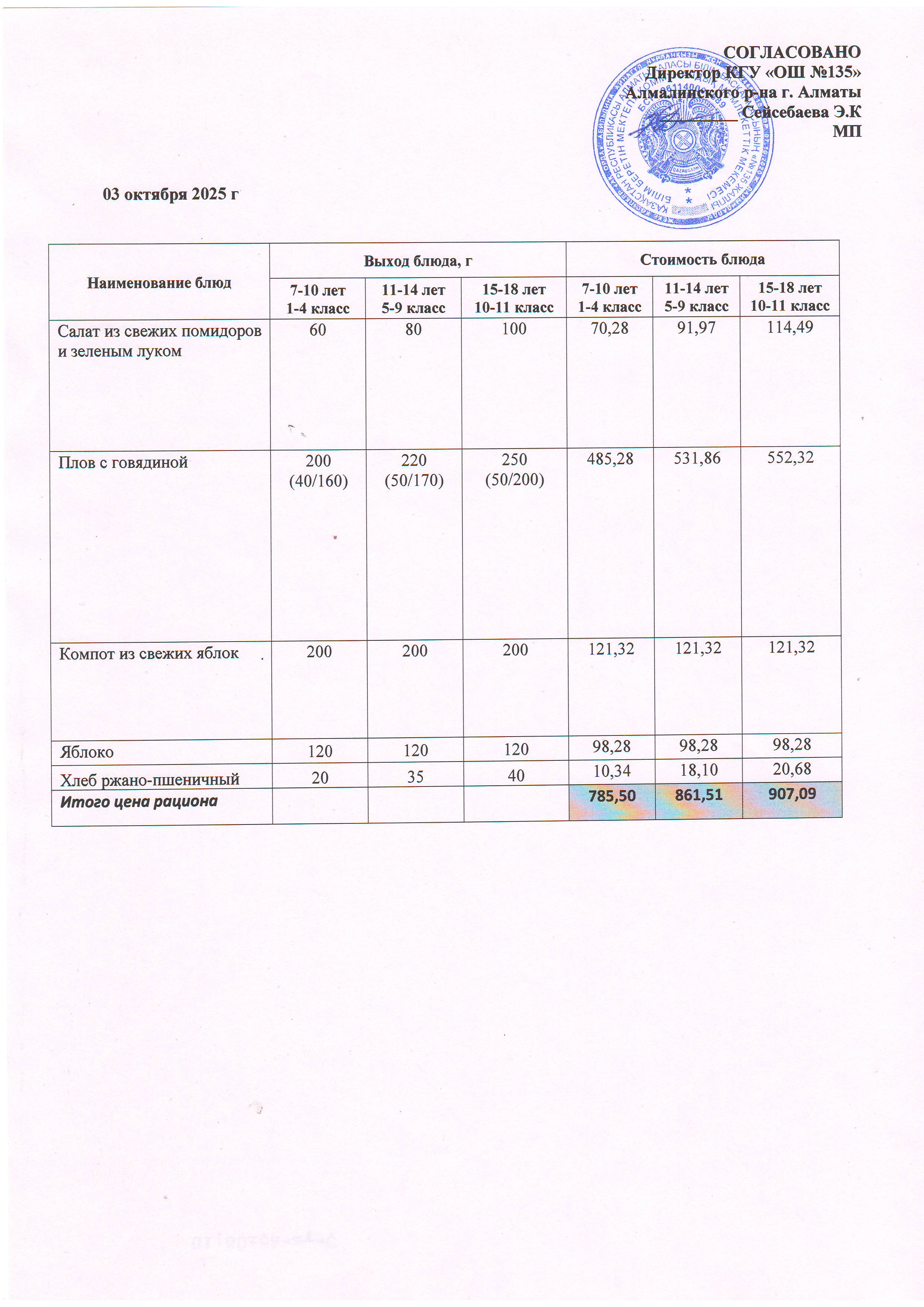 Ас мәзірі 03.10.2025