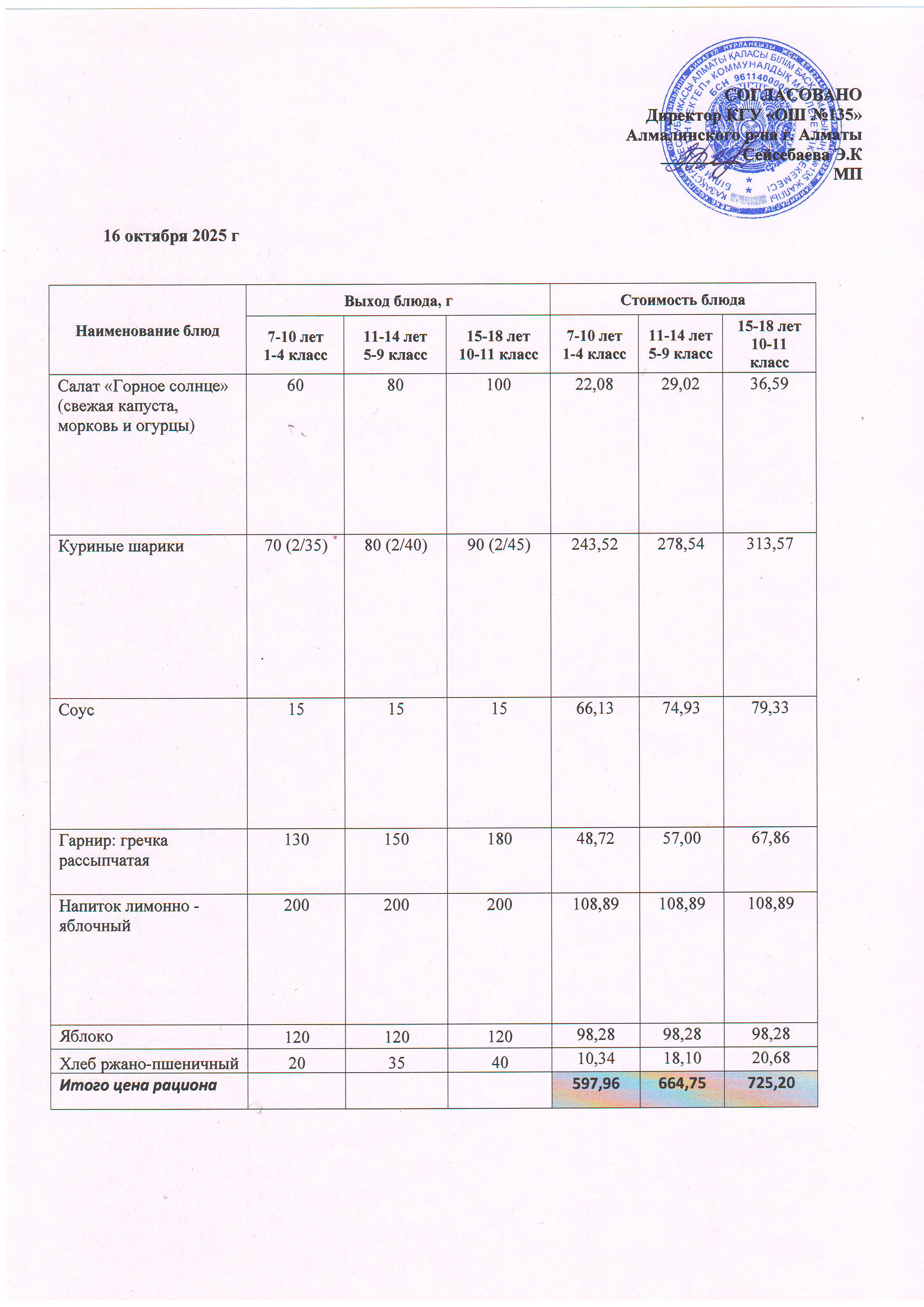 » Ас мәзірі 16.10.2025