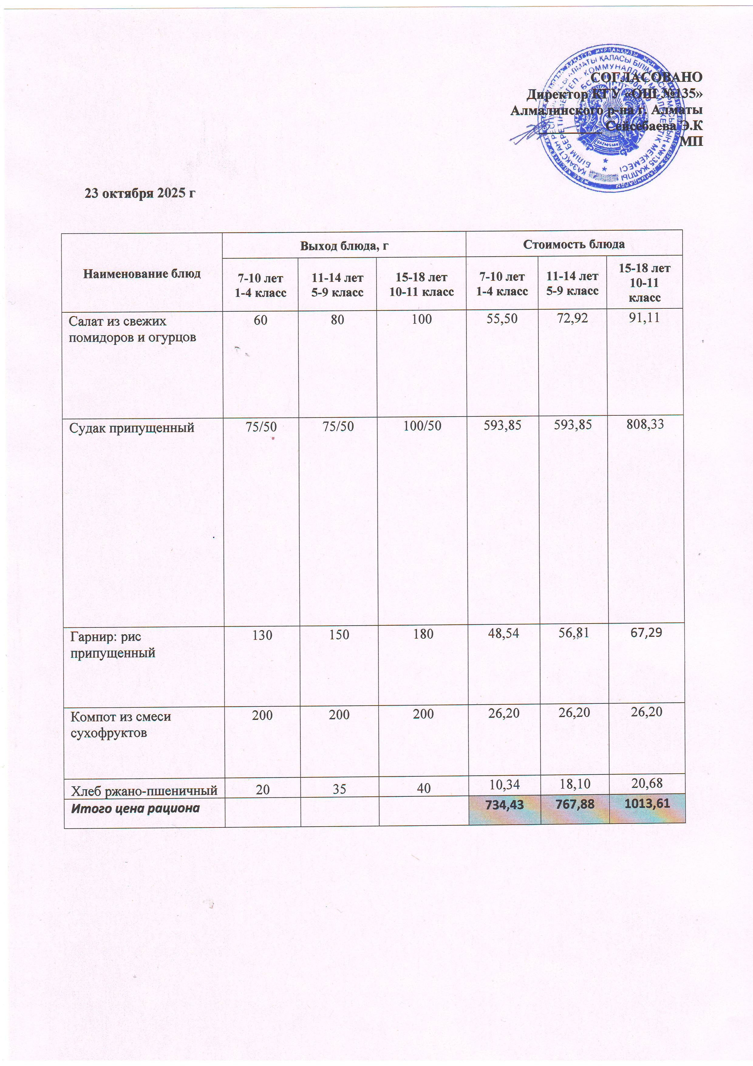 » Ас мәзірі 23.10.2025