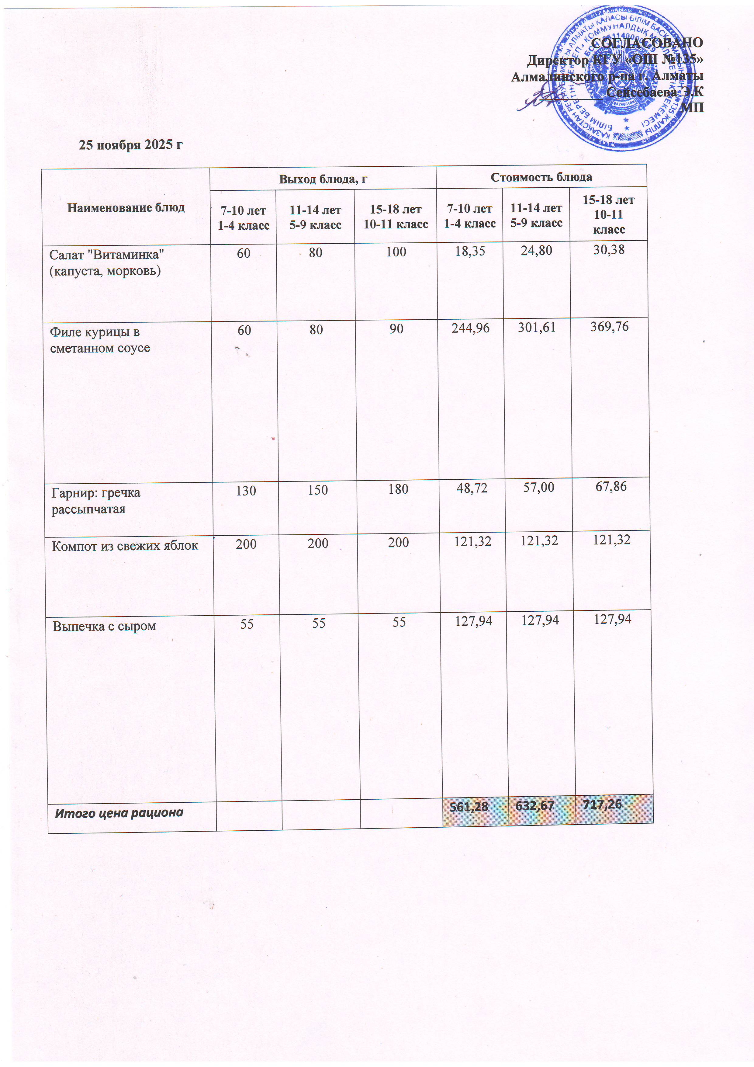 Ас мәзірі 25.11.2025