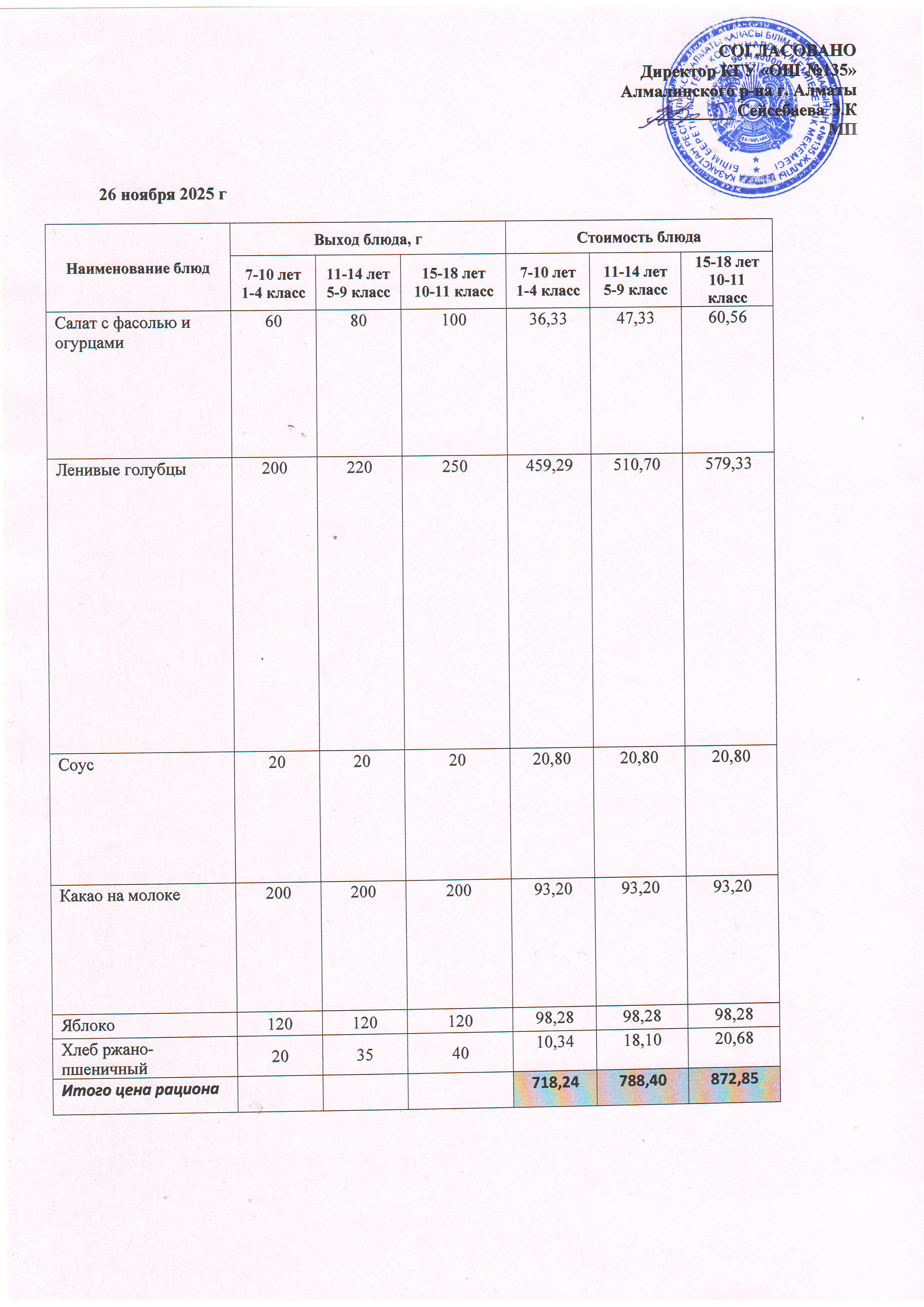 Ас мәзірі 26.11.2025