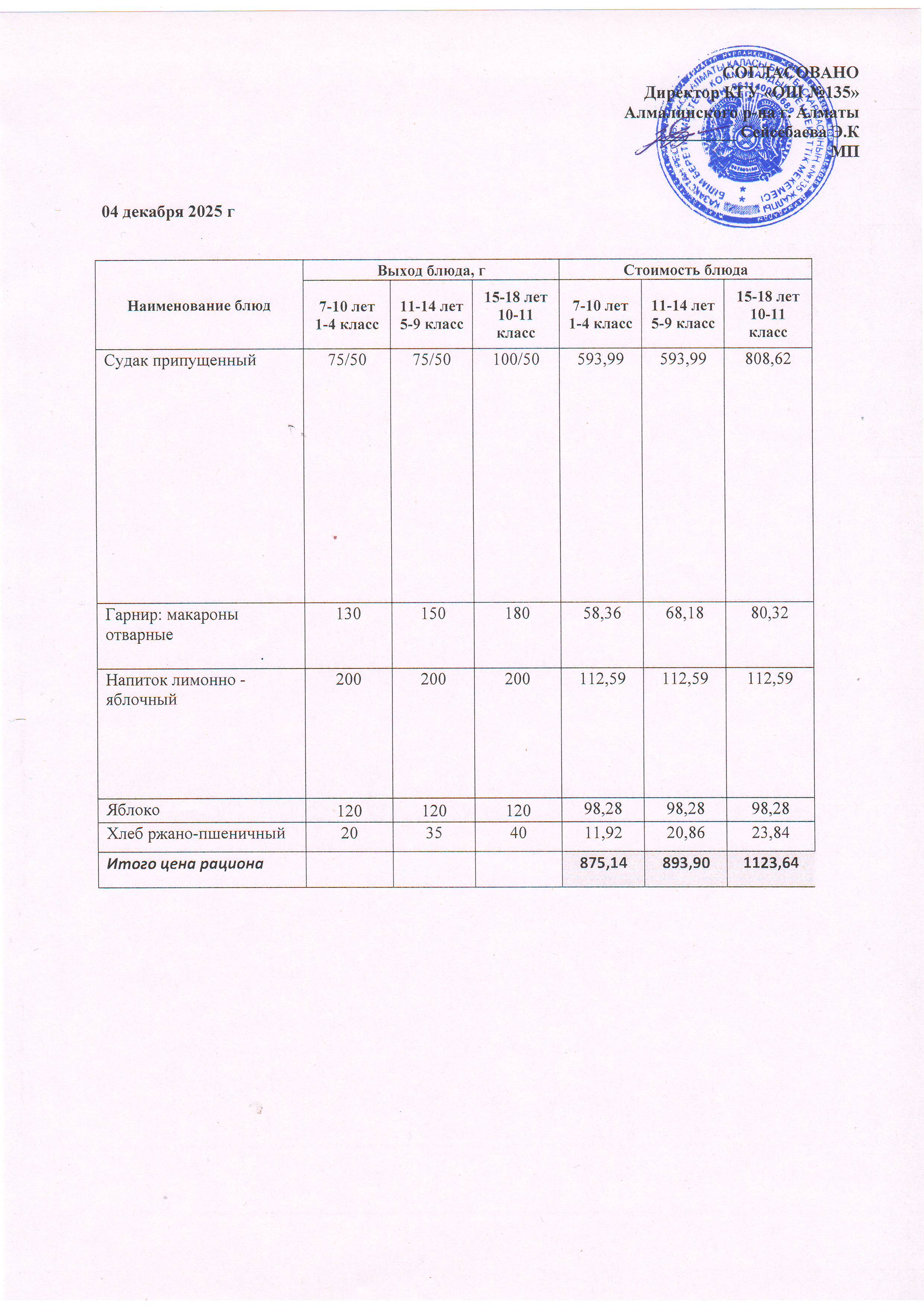 Ас мәзірі 04.12.2025