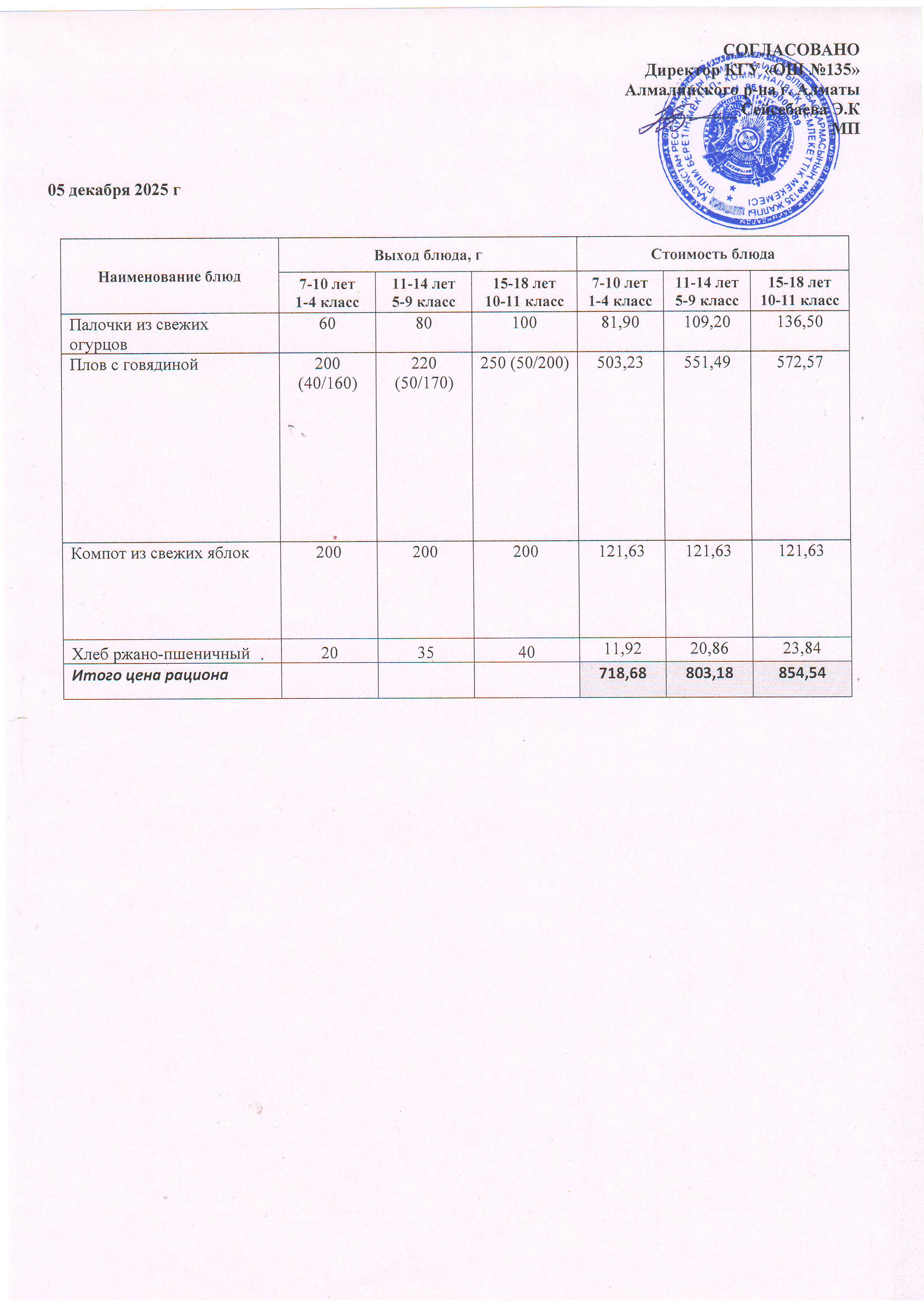 Ас мәзірі 05.12.2025
