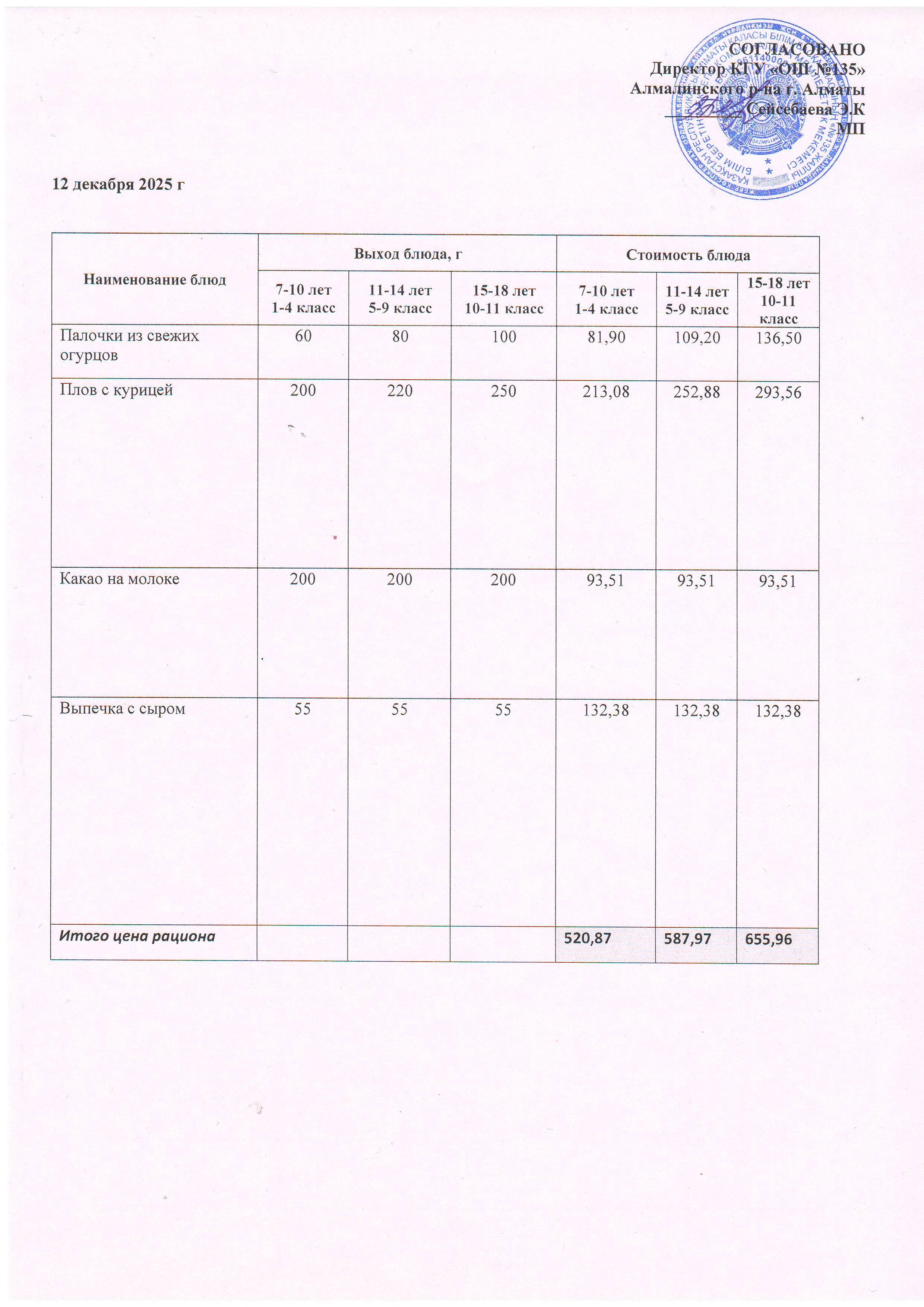 Ас мәзірі 12.12.2025