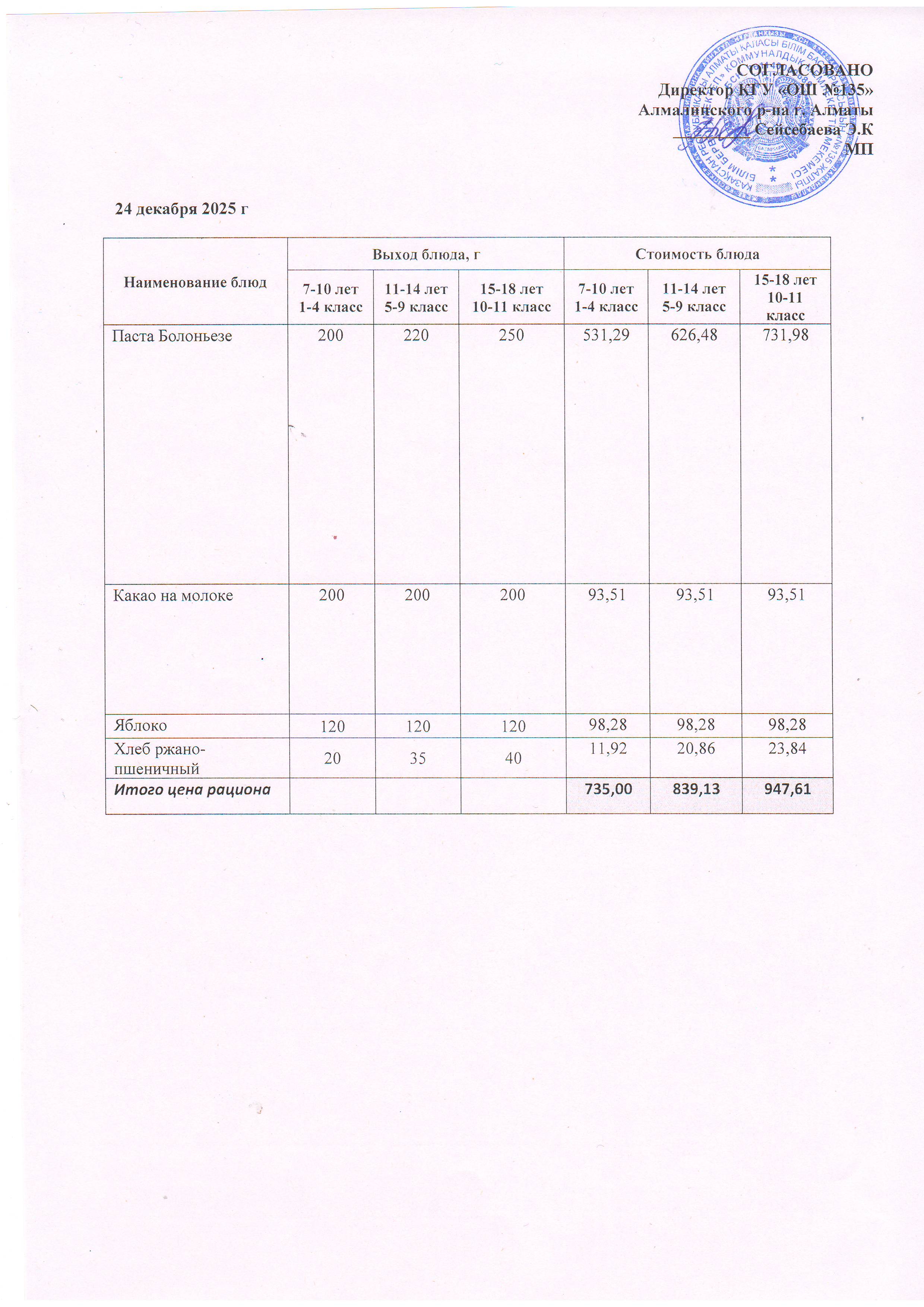 Ас мәзірі 24.12.2025
