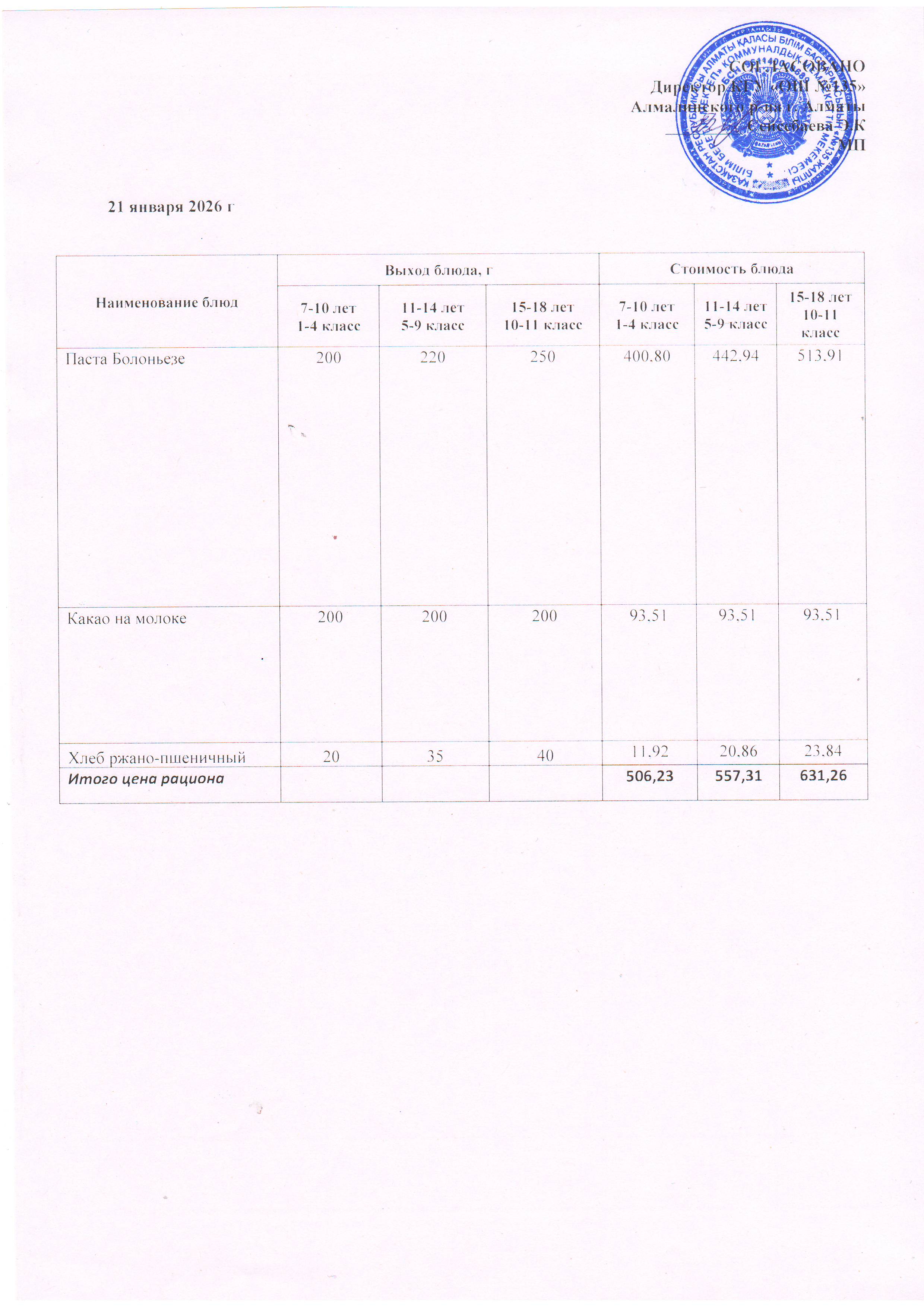 Ас мәзірі 21.01.2026