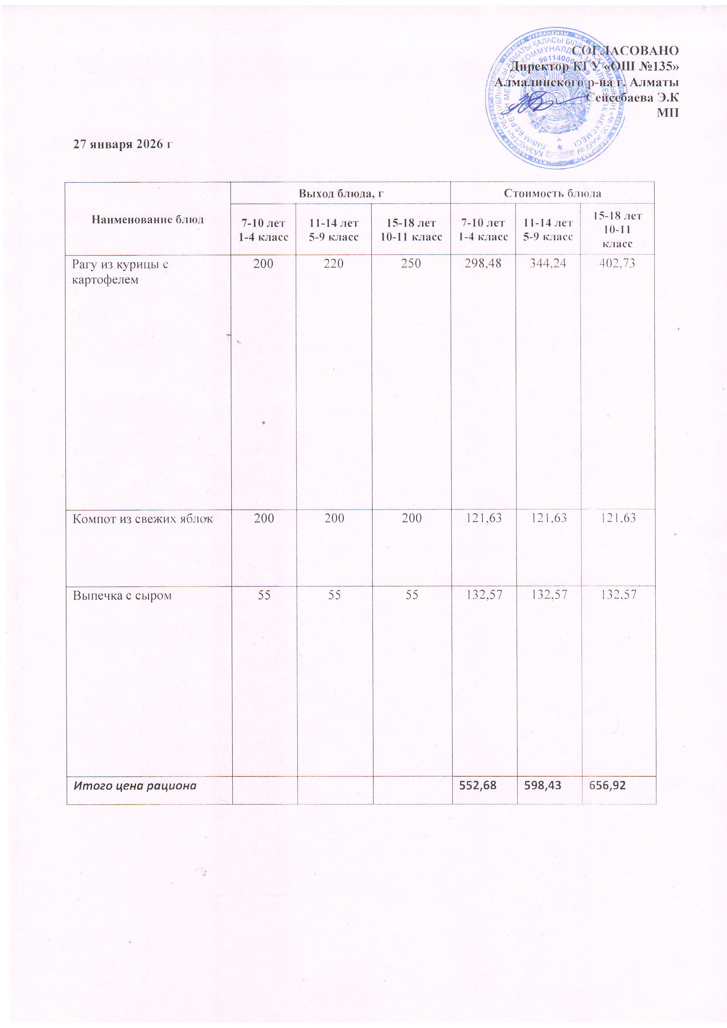 Ас мәзірі 27.01.2026